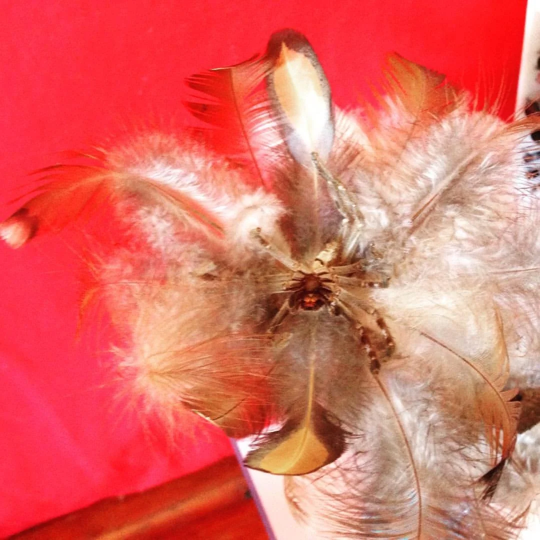 I WENT FROM THERE TO CREATE SIX PIECES: A HANGING PIECE TO SIGNIFY THE PARTY DESTINATION, A HALLWAY PIECE UPON ENTRY, A TABLE PIECE, A FLOOR PIECE, A GARDEN PIECE, A FEATURE HANGING PIECE (PICTURED, AS HANGING IN MY SHED)